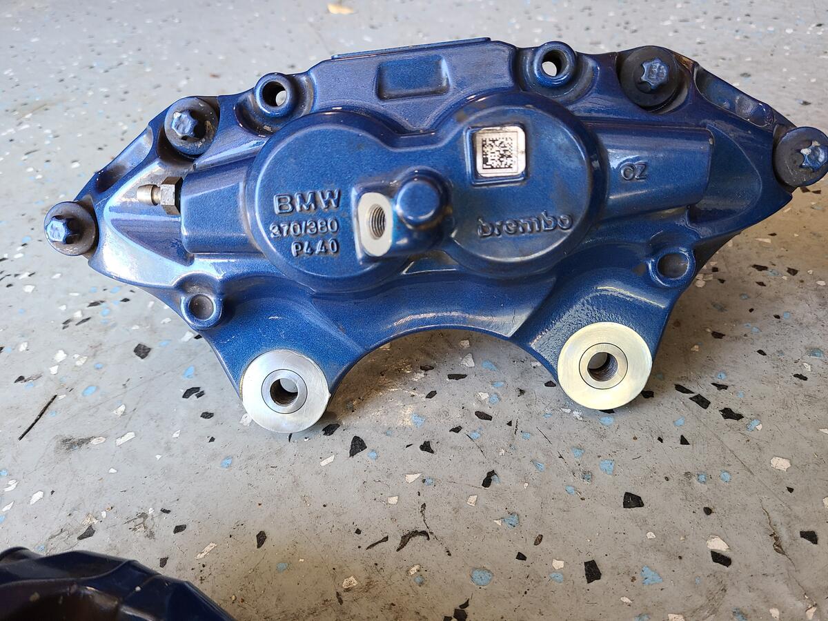 I was lucky enough to find a complete set of calipers/rotors with pads and lines on the F80 forums for a really good deal. This is how the calipers looked when they arrived.