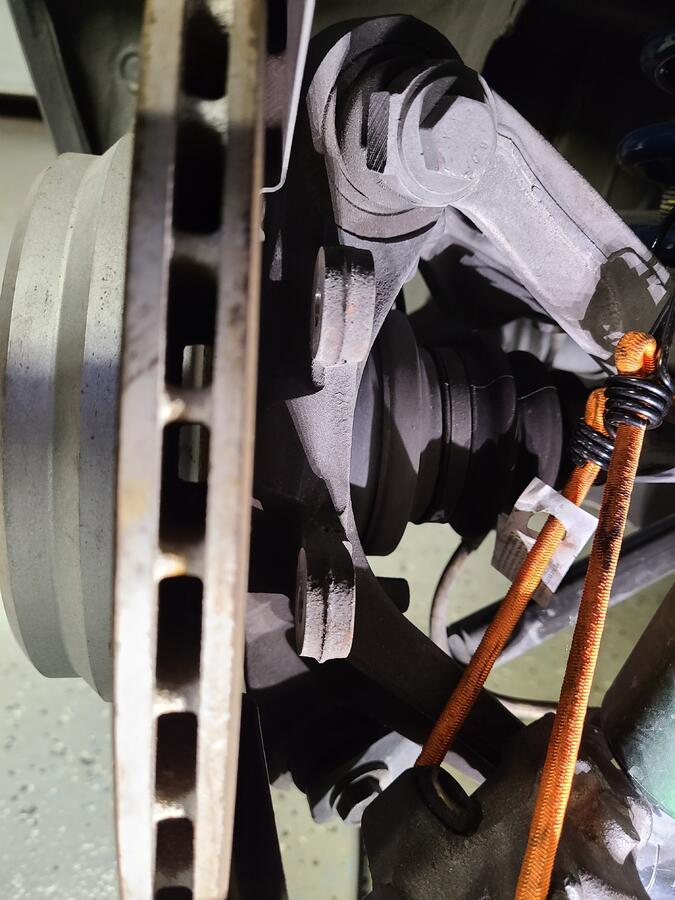 Front pads removed. I put the calipers back on for reference.
