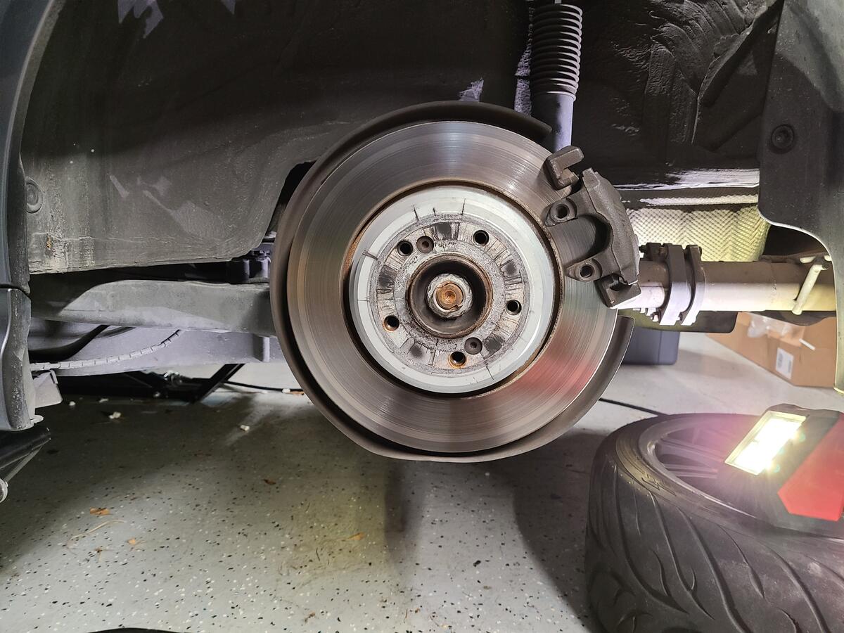 Step 2: Remove Rear caliper and rotor. I left the caliper attached to the brake line since I was going to be grinding and did not want to get debris in the system.