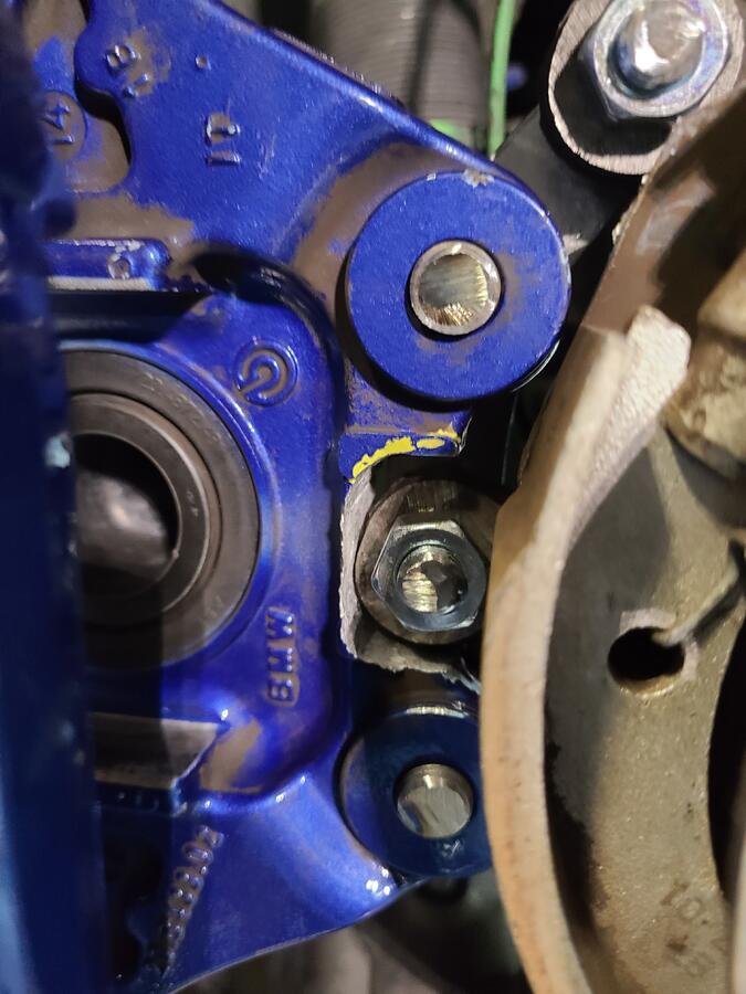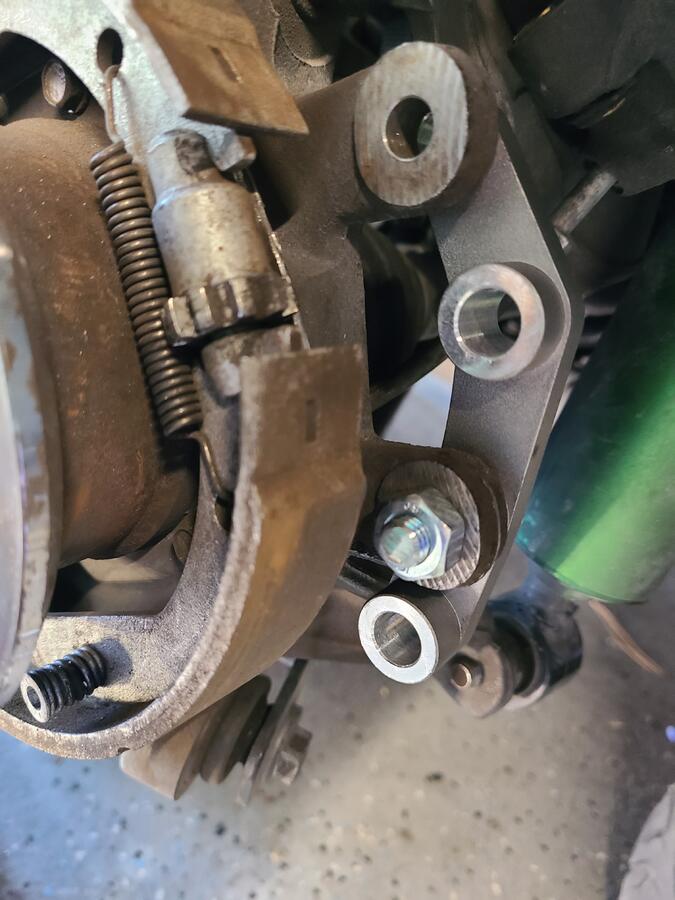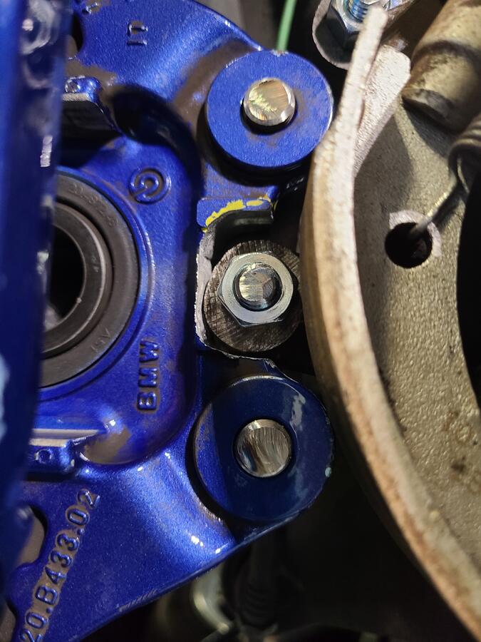 Step 6 (only if needed): Ensure all bolts are the proper length. Jahaddow's DIY stated 45mm bolts were needed but I found these to be way too long. I put 40mm bolts but those may still be slightly too long. I ended up measure distances and found about 38mm to be a good distance for full thread engagement while preventing contact with the rotor. I ground my bolts down to about 38mm as shown below.