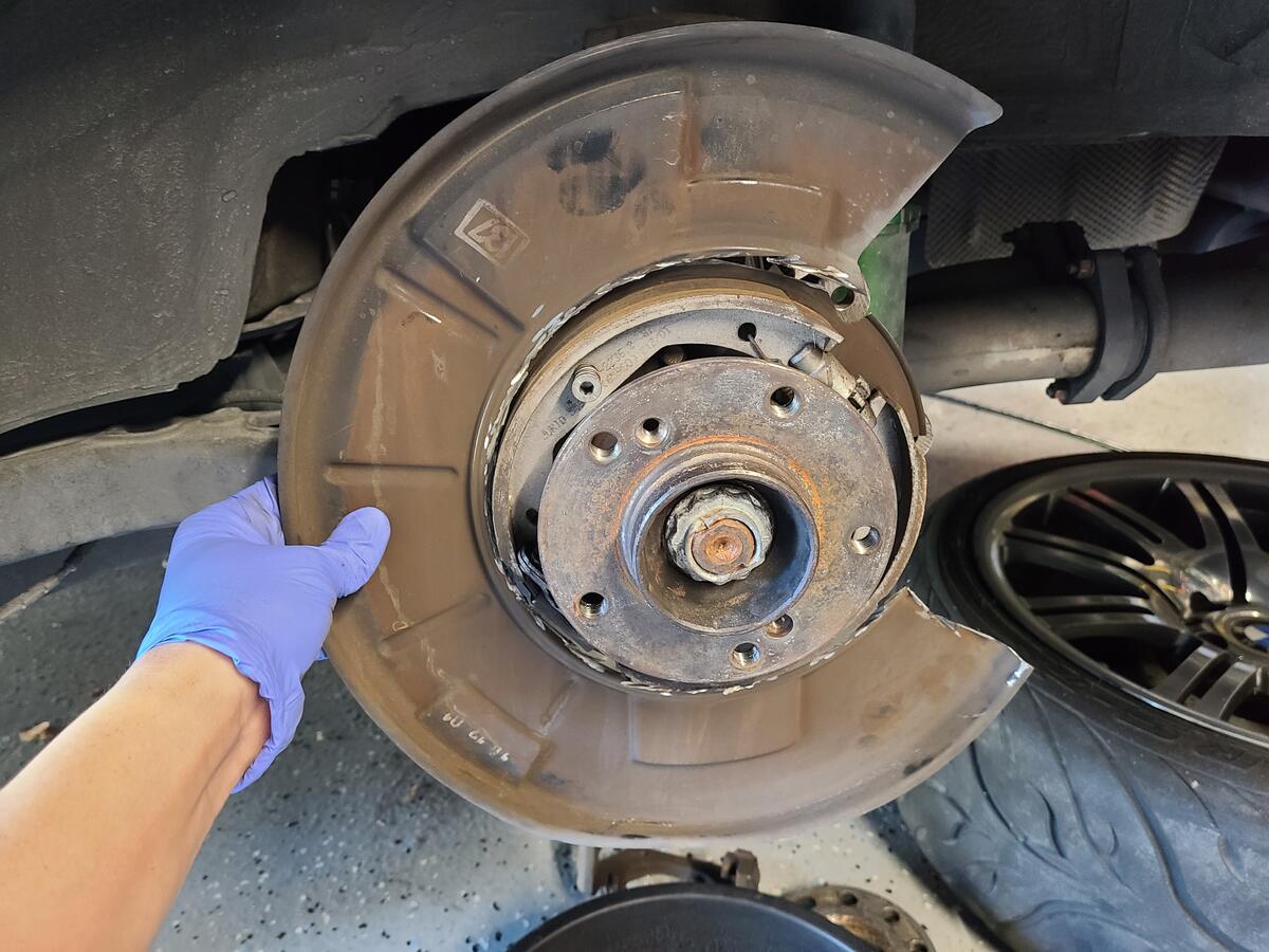 Step 4: Cut off the rear shield.I used an angle grinder with a 4 inch and 5 inch cutting disc. I This is what I originally cut off but all the metal that sticks up passed the parking shoe needs to be removed or else it will grind against the m4 rotors.