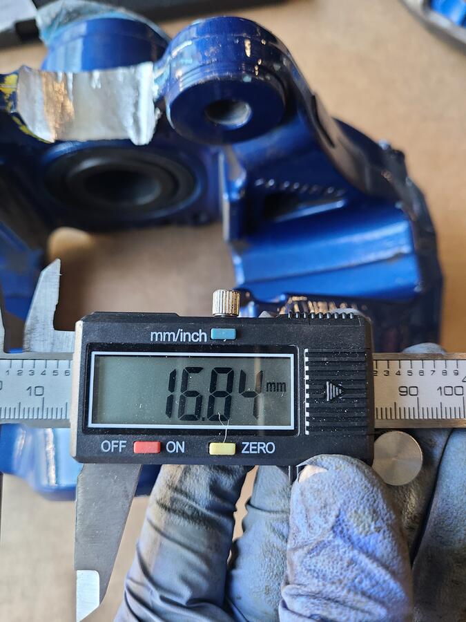 Close up of rear calipers with a portion of center section removed. More material had to be removed, but this definitely cut down on the total grinding and cutting time required for each caliper.