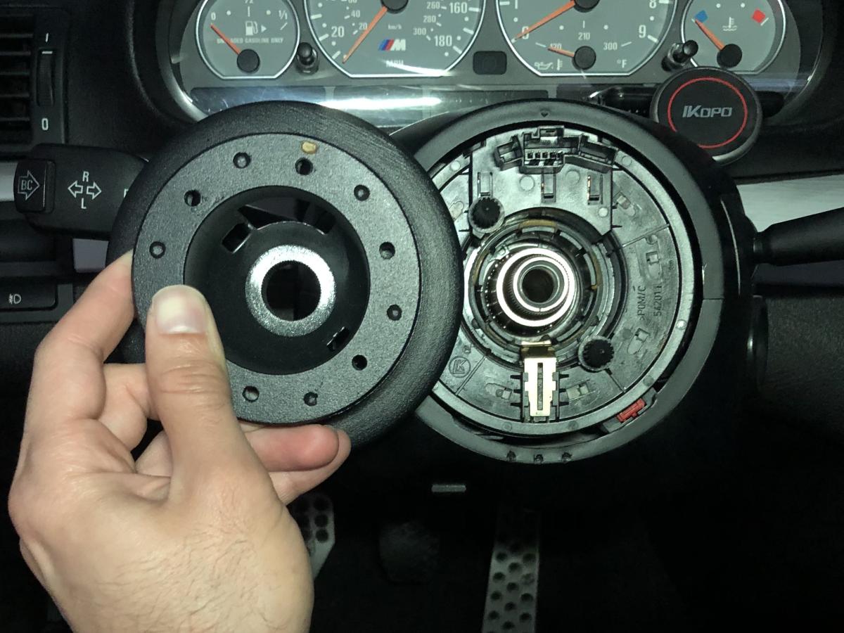 Lastly here’s a side by side of how canted the wheel hub is when lined up with the centered clockspring knubs that i took to send to the OMP sales rep.