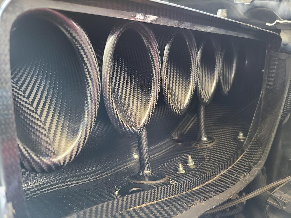 Later I took apart the CSL intake to clean out the ash and whatever crap has gotten stuck in the air filter since I've installed it. Got to ogle at the carbon fiber masterpiece that Karbonius made. I thought I was going to see more oil blow-by but it looked pretty good in there.