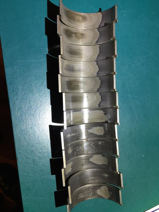 All four of the middle cylinders had the bearings sticking to the crank, and you can see that they have contracted compared to 1 and 6. Its a miracle that nothing spun and that the crank was smooth.Originally posted by cobra View Post
