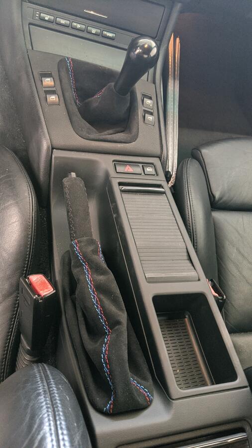 Looking to add a little color to the interior, and I'm thinking of a shift boot, e-brake boot, and steering wheel with the M tri-color stitching. I've seen Condor's designs (like M rain, M hurricane, and M tech) and the patterns aren't appealing to me. I'd prefer something more subtle like tri-color stitching, hopefully on alcantara.