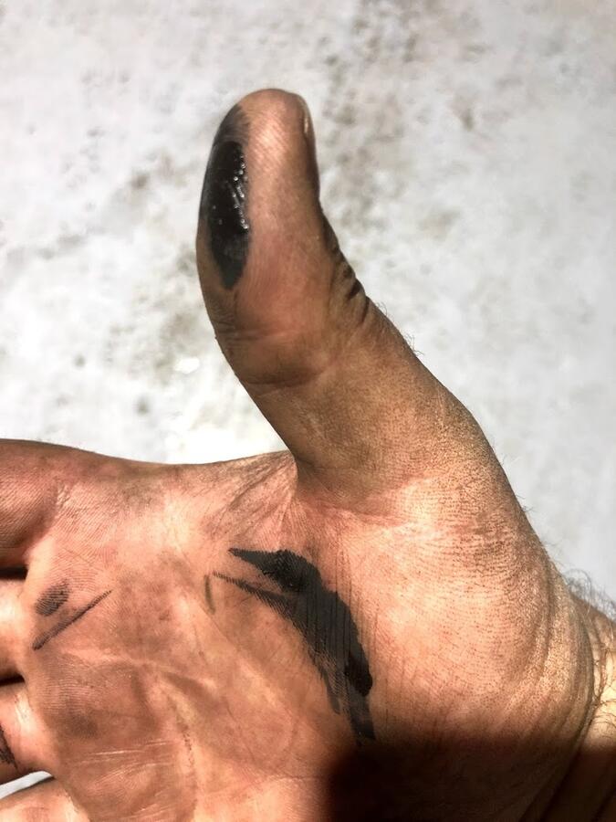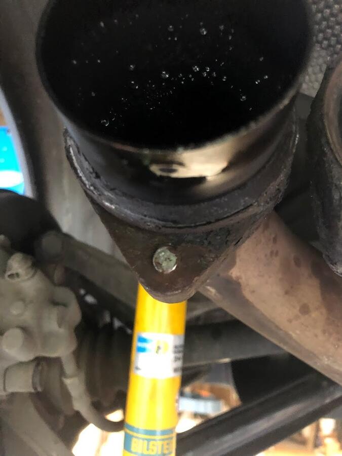 Looks like water / carbon. Did you start / stop your car before it was fully warmed up? If so, there's normally a good amount of water in the exhaust from the cat.