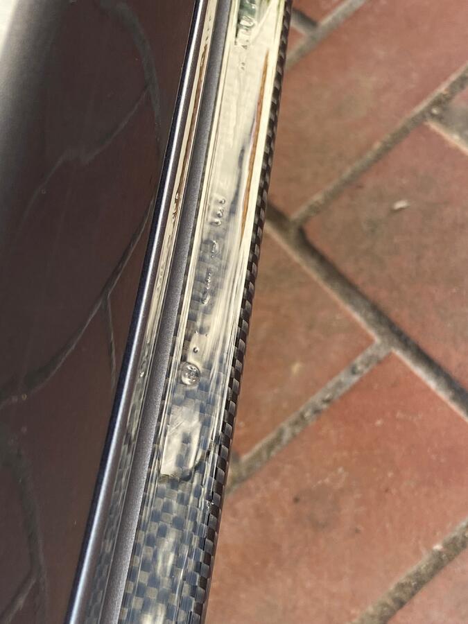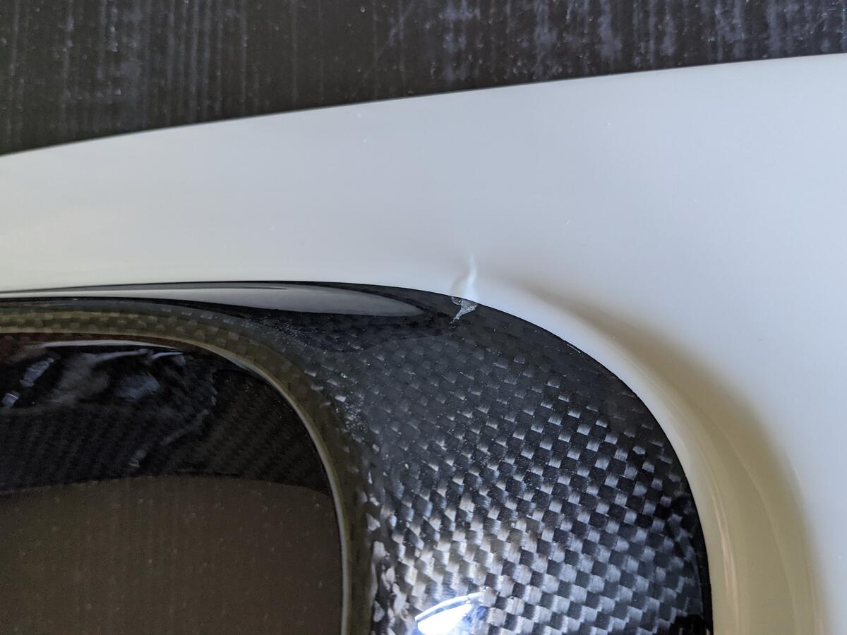2) Paint and finish - paint looks lustrous and match to factory steel grey. However, the clear coat is imperfect in multiple locations - multiple tiny bubble along the top edge of the exposed carbon. allI didn't notice when I did the visual inspection earlier (since you have view it from the top). Its one of those things that you can't unsee....so disappointing for sure.