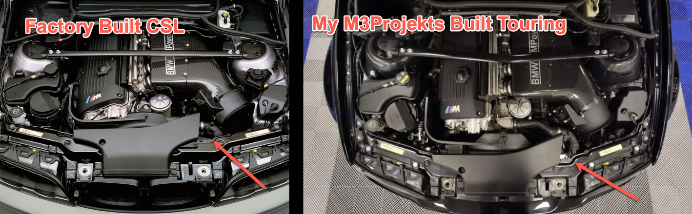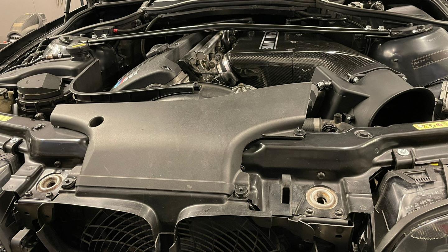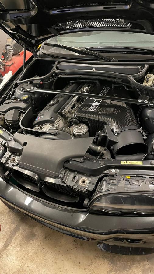 generally speaking: it’s always bothered me when aftermarket intakes on the E46 platform is used and that plastic snorkel piece (center above rad) is just kinda, floating there. It seems so out of place.
