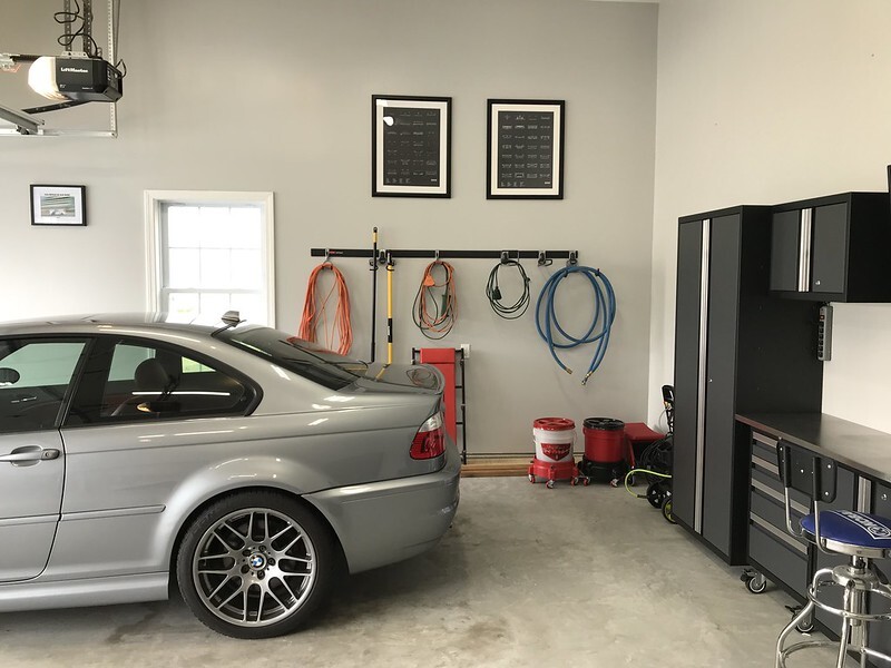 First photos of the M3 in the garage with the Swisstrax flooring: