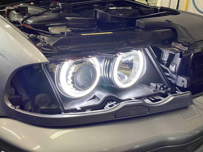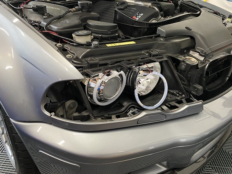 Got a couple of smaller projects done last weekend before heading out to the Cape for a much needed vacation. One of which dealt with the M3. The passenger side Angel Eyes had shifted somewhat, which annoyed me. As I'm sure many of you know, they're not held on by much....two plastic clips and double-sided tape. So I removed the headlight cover and added a bunch more 3M double-sided tape and am pretty confident they'll stay put (for now):
