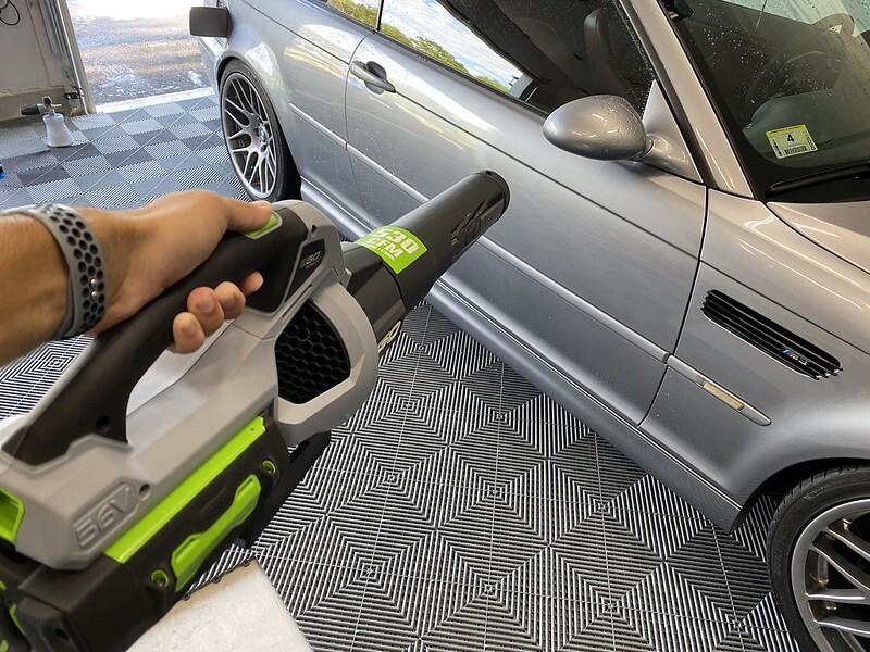 - blow dry (inside garage to keep out of the sun) with Ego 530 leaf blower