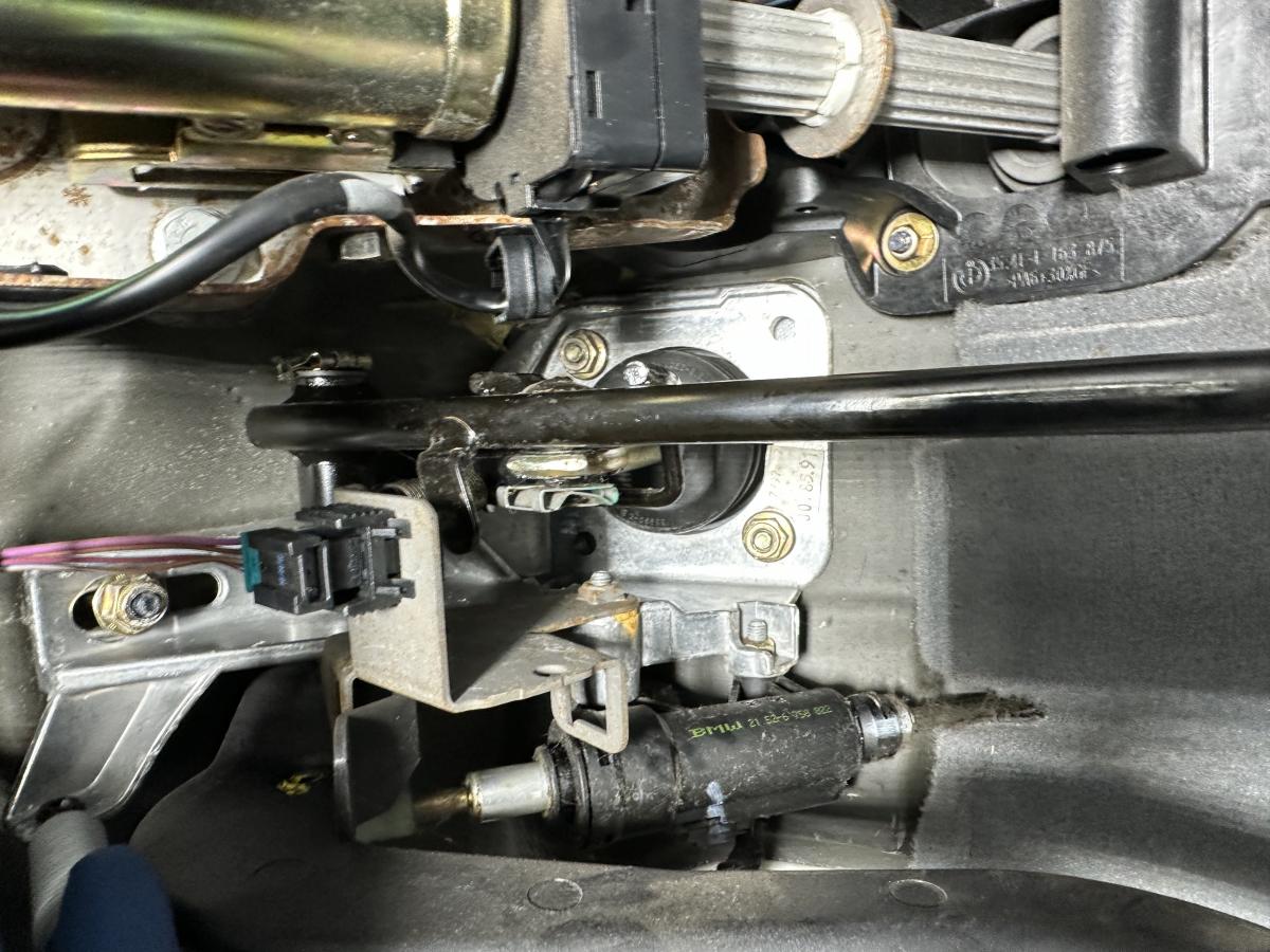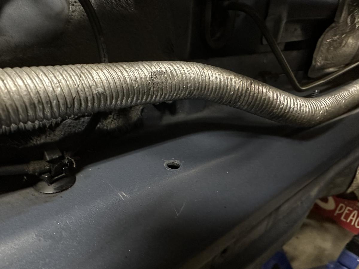 The mk60 m3 has three studs yeah? My donor was an mk20 car so if memory serves it just had three studs and those hollow metal nuts for tie-down. The 330i has one stud conveniently located in the same spot as the center stud on the M3. In the mk60 330i it’s there to hold down the brake line only. It seems to work well as doubly-duty brake like and heat shield tie-down.