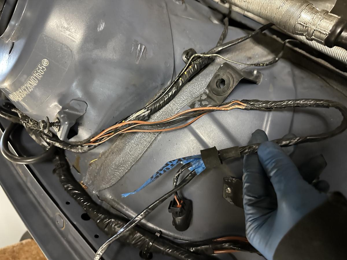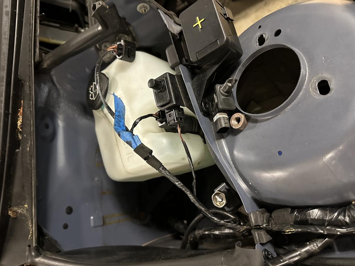 - Re-wired some engine bay wiring to accommodate new washer tank location. Re-wrapped with Super 88. Parfait.