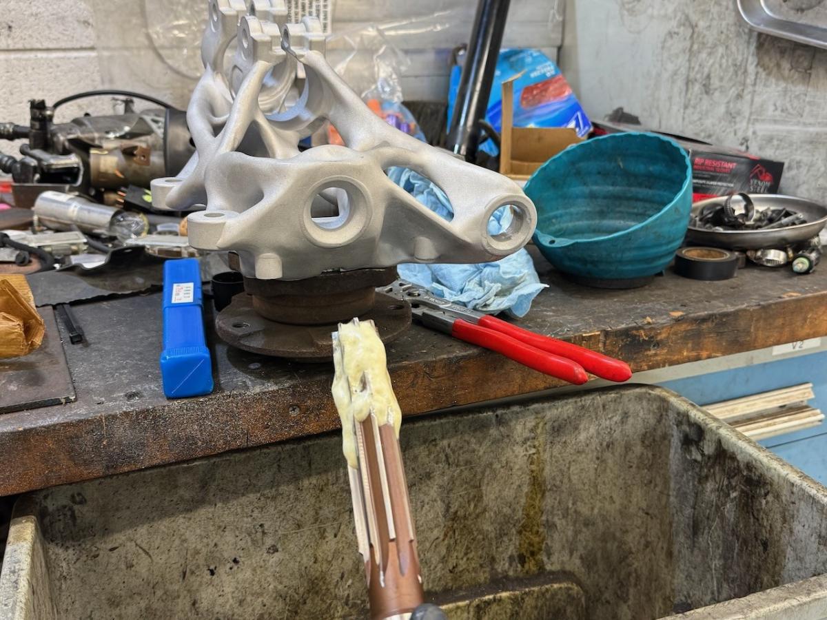 Next up, have to machine the LCA and tie rod inserts, heat treat/quench the part, open up the hub locating bore, finish the bores of the LCA and tie rod mating interference fits, then this thing is ready for install. Wild!